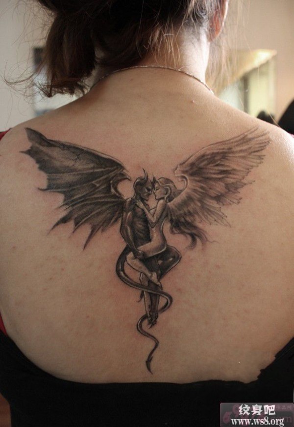 天使与魔鬼背部图案_天使纹身图案大全_纹身图吧