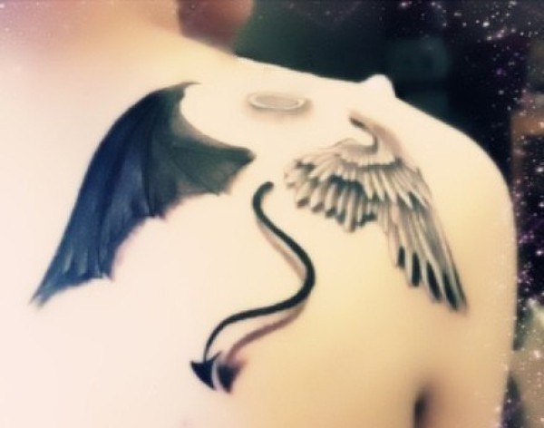 天使和魔鬼,女人肩部创意刺青_天使纹身图案大全_纹身图吧