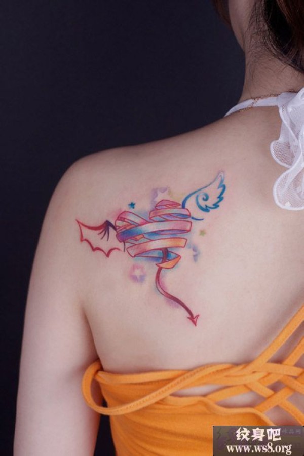 天使与恶魔心创意肩部纹身图案_天使纹身图案大全_纹身图吧