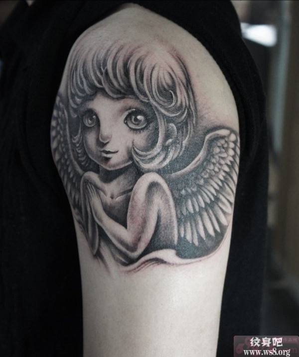 手臂可爱小天使肖像纹身图案_天使纹身图案大全_纹身图吧