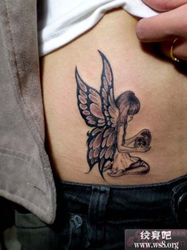 蝴蝶天使腰部时尚纹身图案_天使纹身图案大全_纹身图吧