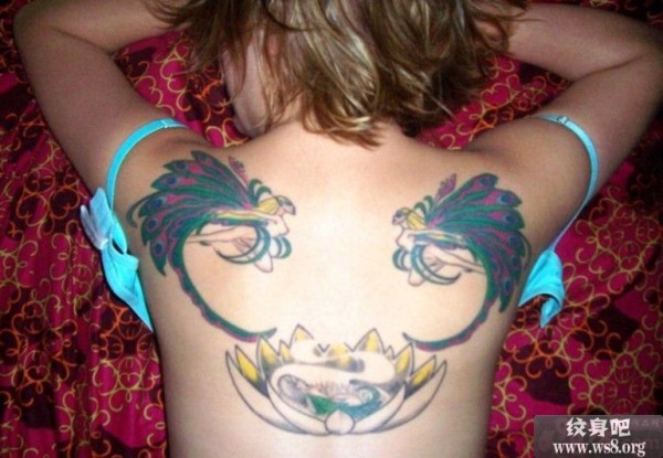 女生背部孔雀天使图案_天使纹身图案大全_纹身图吧
