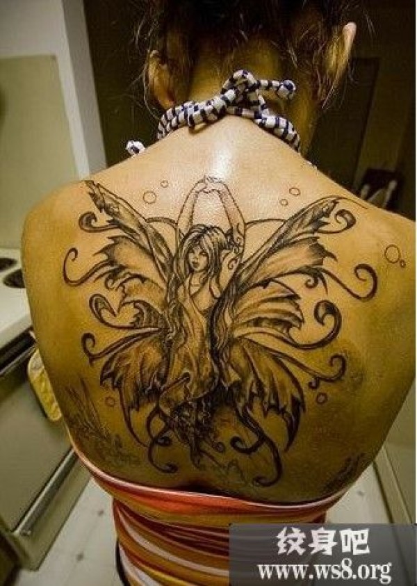 性感美女后背天使图案_天使纹身图案大全_纹身图吧