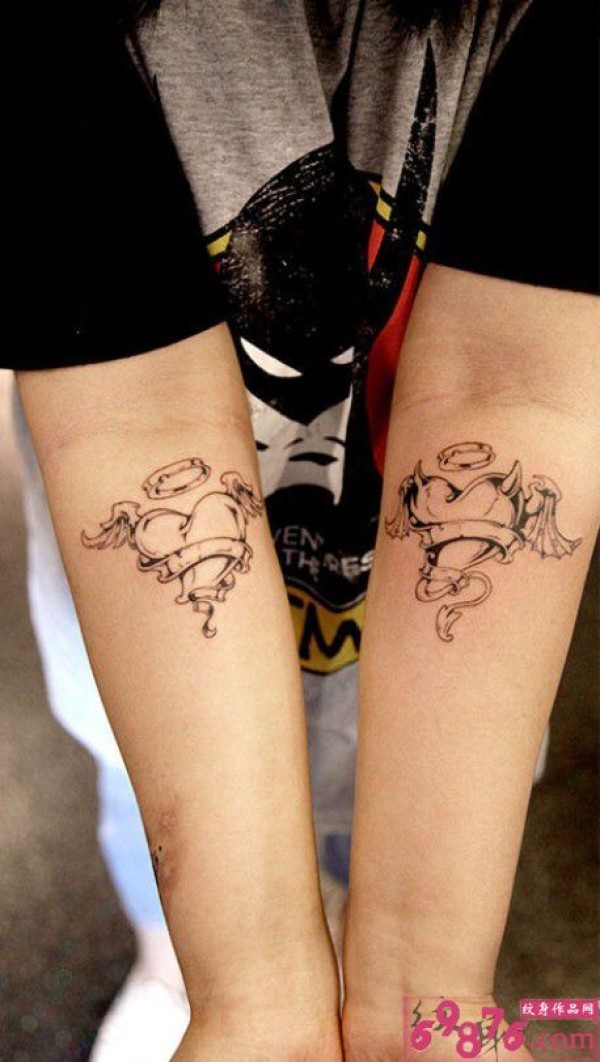 天使恶魔心手臂纹身_天使纹身图案大全_纹身图吧
