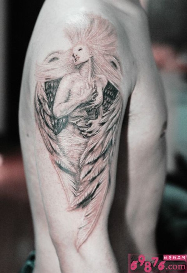 唯美守护天使手臂纹身_天使纹身图案大全_纹身图吧