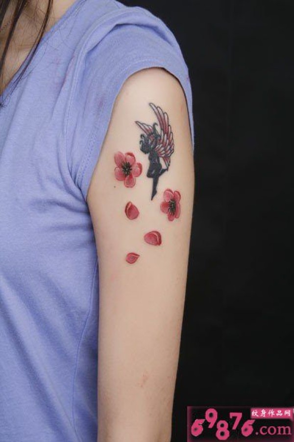 女生樱花天使手臂纹身图案_天使纹身图案大全_纹身图吧