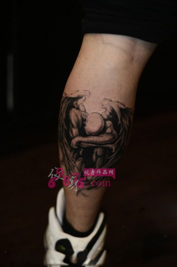 欧美黑灰天使小腿纹身_天使纹身图案大全_纹身图吧