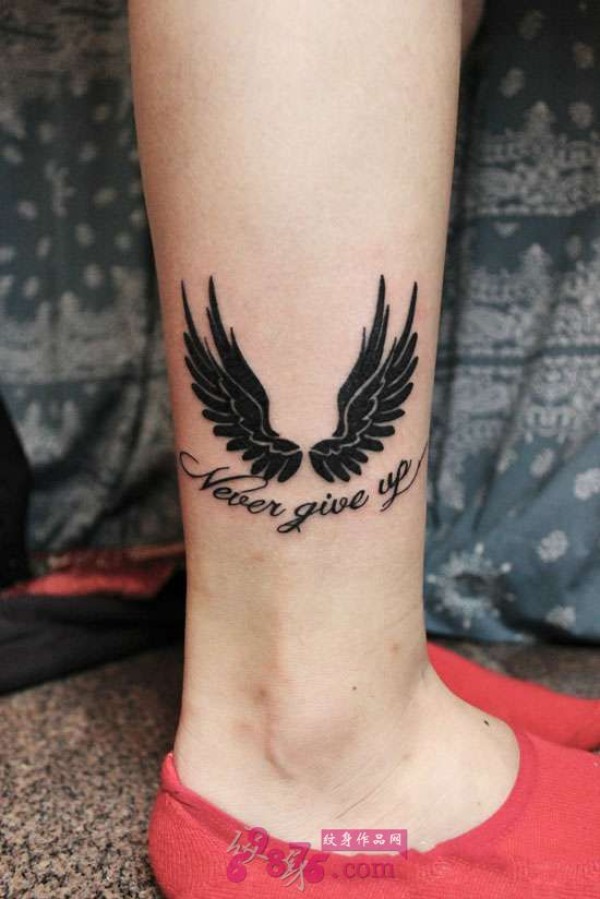 天使翅膀英文脚踝纹身_天使纹身图案大全_纹身图吧