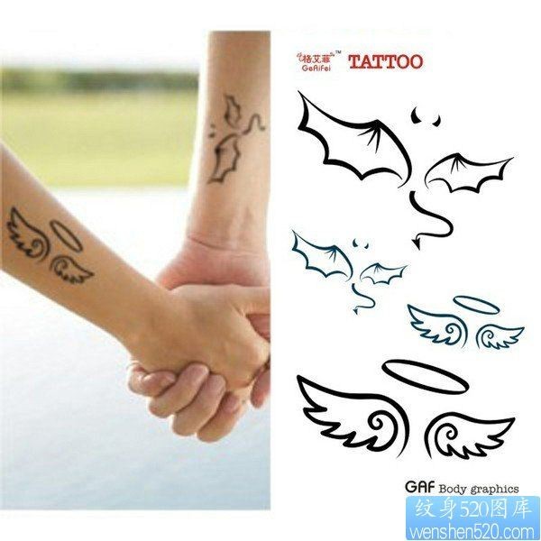 一组情侣天使纹身图片由纹身520图库推荐_天使纹身图案大全_纹身图吧