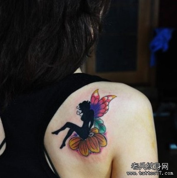 肩部彩色天使纹身图片由_天使纹身图案大全_纹身图吧