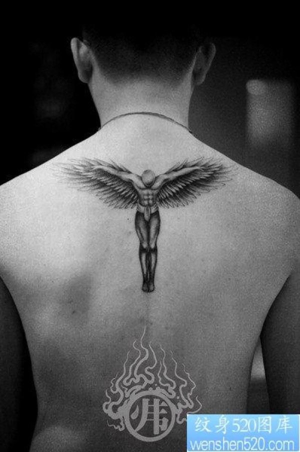 男人后背潮流经典的守护天使纹身图片_天使纹身图案大全_纹身图吧