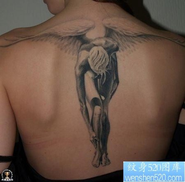 背部天使翅膀纹身图片_天使纹身图案大全_纹身图吧