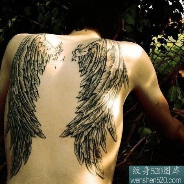 后背纹身图案大全超酷超帅的满背天使翅膀纹_天使纹身图案大全_纹身图吧