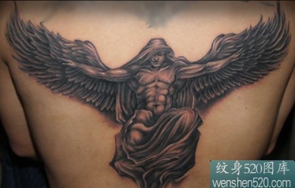 后背黑色守护天使纹身图案_天使纹身图案大全_纹身图吧