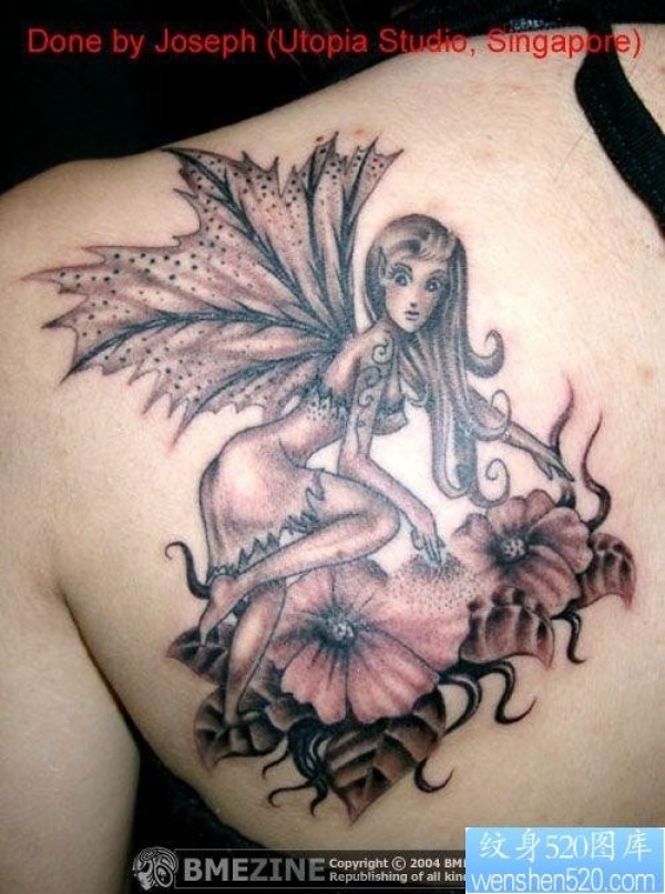 后背可爱精灵纹身图片图案_天使纹身图案大全_纹身图吧