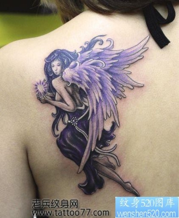 流行经典的美女背部天使纹身图片_天使纹身图案大全_纹身图吧