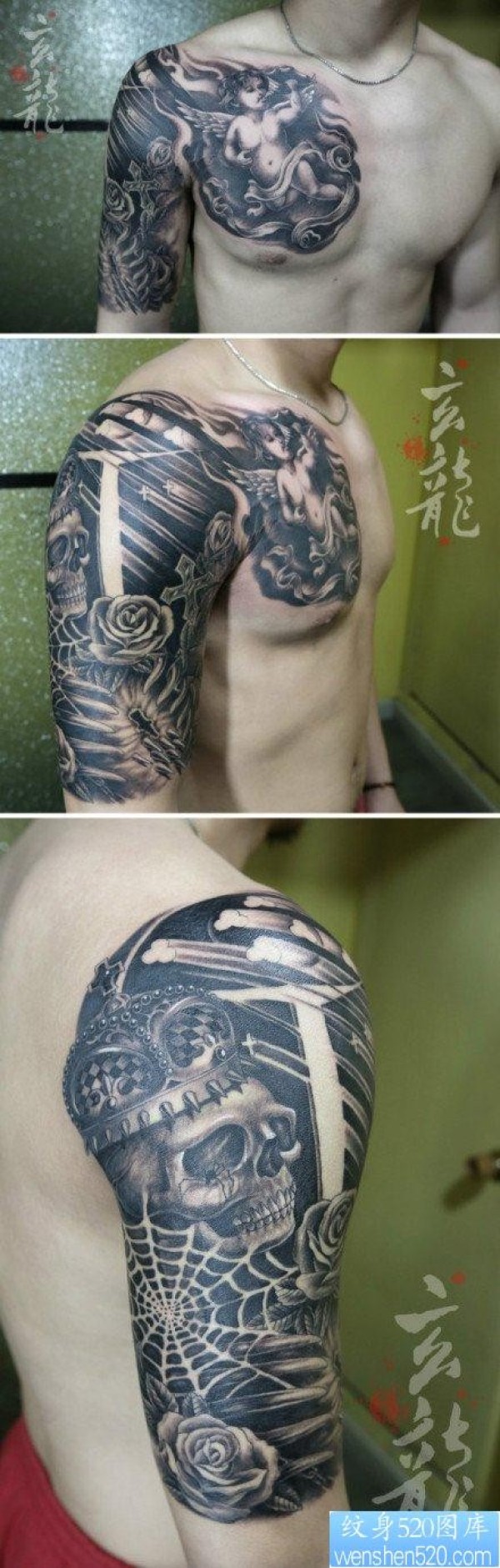 中国纹身图片欣赏经典潮流的欧美素描 半甲丘_天使纹身图案大全_纹身图吧