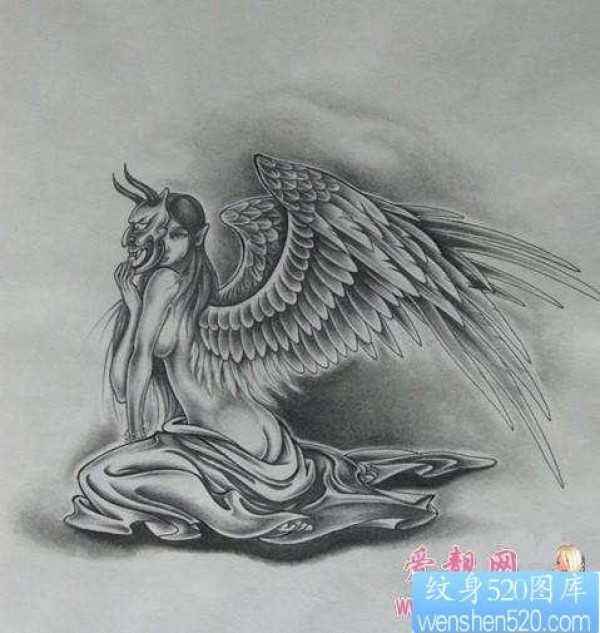 天使纹身图片:黑灰天使纹身图片图案_天使纹身图案大全_纹身图吧