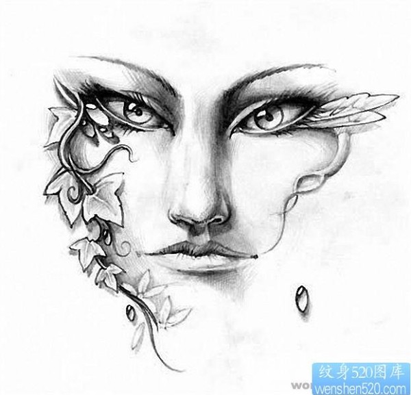 黑灰精灵纹身图片图案_天使纹身图案大全_纹身图吧