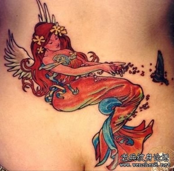 美女腹部蝴蝶天使纹身图片图案(经典)_天使纹身图案大全_纹身图吧