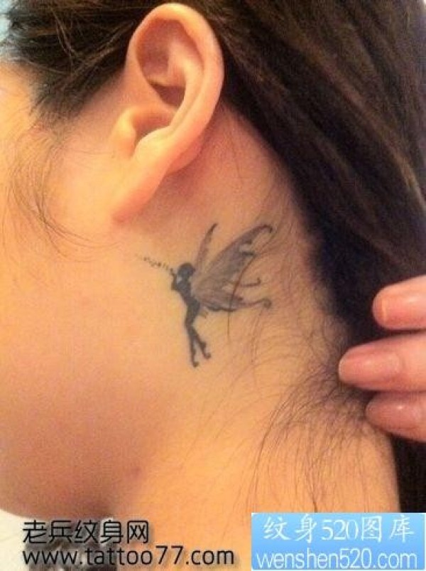 美女颈部可爱小巧的精灵纹身图片_天使纹身图案大全_纹身图吧