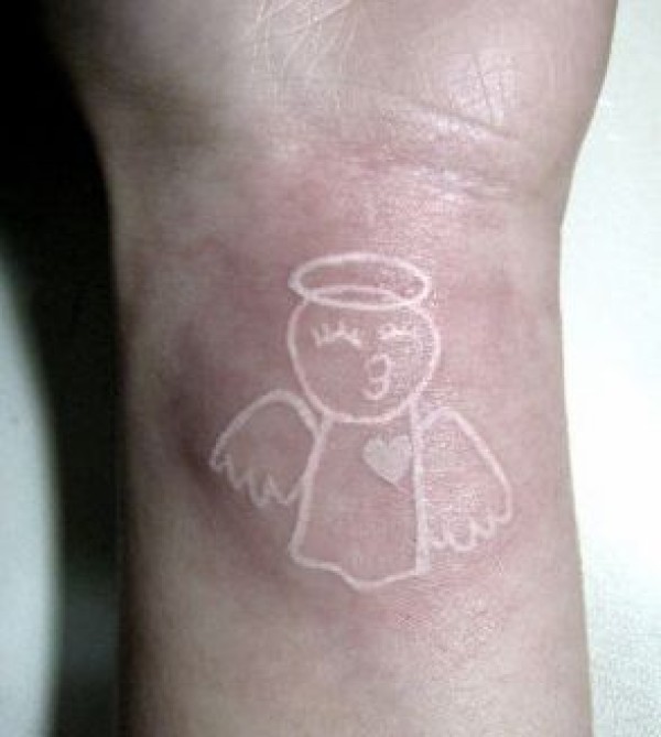 女孩子手臂白色可爱天使纹身图片_天使纹身图案大全_纹身图吧