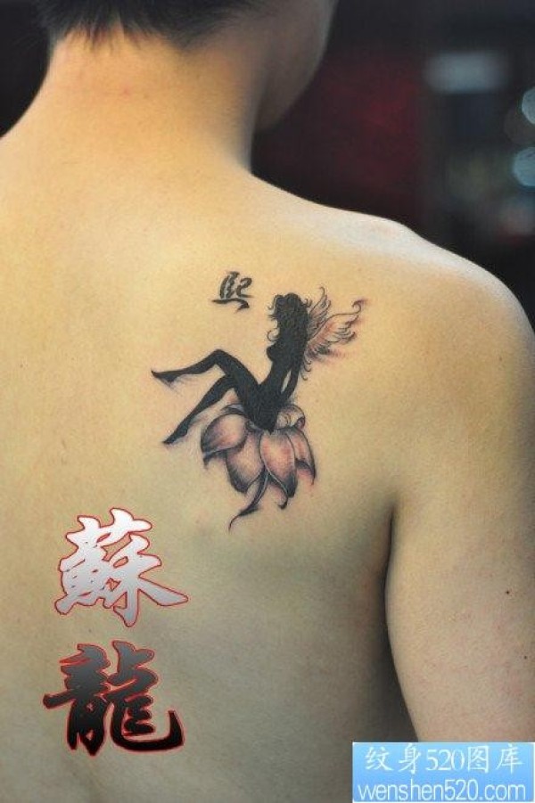 男性肩背流行性感的精灵纹身图片_天使纹身图案大全_纹身图吧