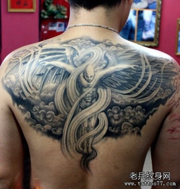 男孩子背部经典的守护天使纹身图片_天使纹身图案大全_纹身图吧