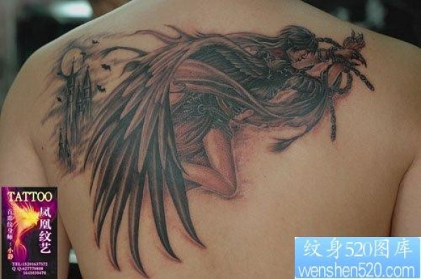 男生背部经典的天使纹身图片_天使纹身图案大全_纹身图吧