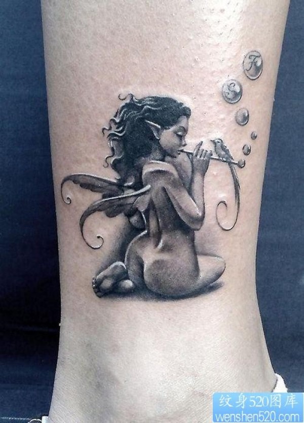 女人腿部性感流行的小精灵纹身图片_天使纹身图案大全_纹身图吧