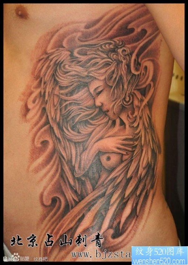 男生腰部漂亮流行的天使纹身图片_天使纹身图案大全_纹身图吧