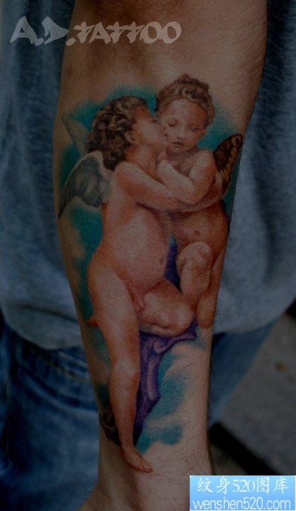 手臂可爱漂亮的彩色小天使丘比特纹身图片_天使纹身图案大全_纹身图吧