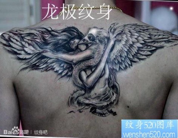 男生后背很酷前卫的天使纹身图片_天使纹身图案大全_纹身图吧