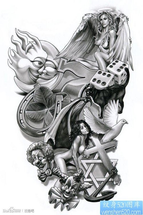 天使美女狼纹身图案_天使纹身图案大全_纹身图吧
