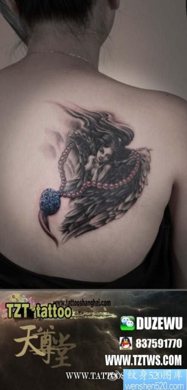 女人肩背前卫漂亮的天使纹身图片_天使纹身图案大全_纹身图吧
