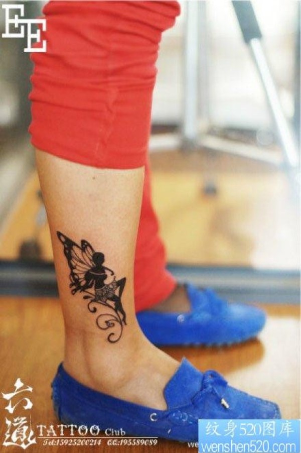 女人腿部前卫经典的图腾精灵纹身图片_天使纹身图案大全_纹身图吧