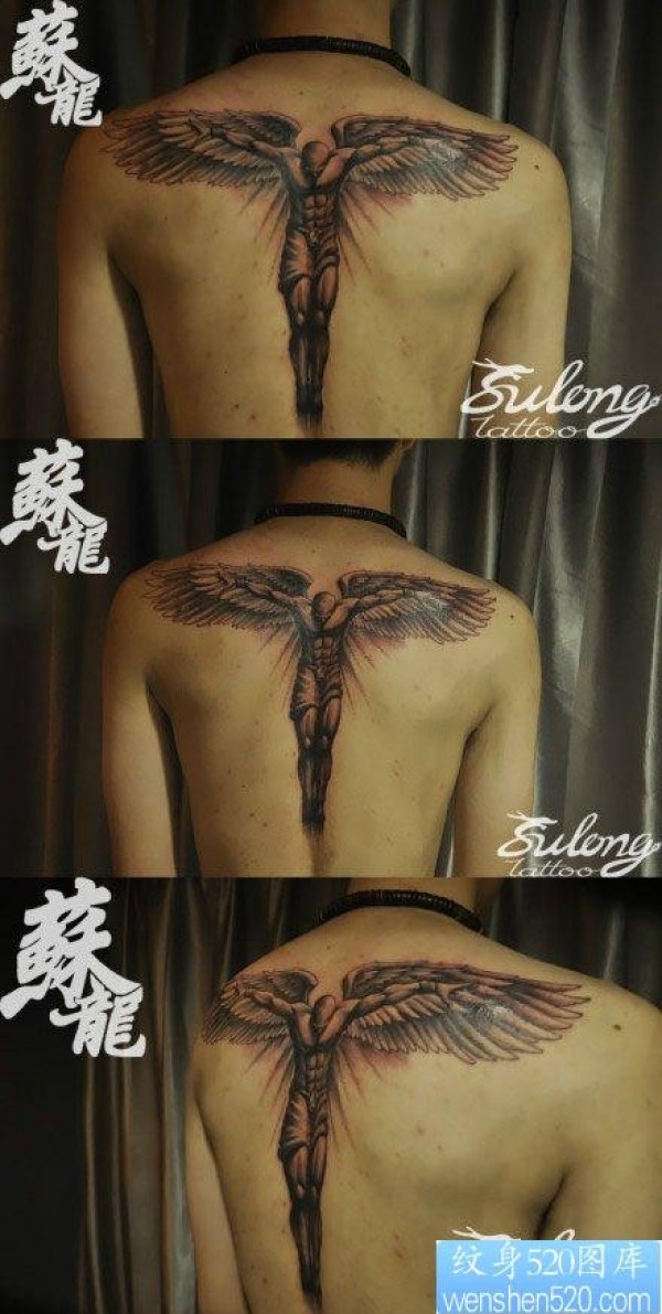后背守护天使纹身图片_天使纹身图案大全_纹身图吧