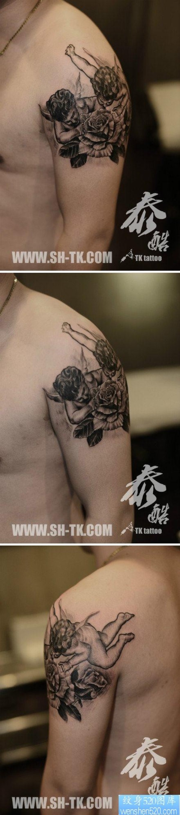 手臂纹身图案大全手臂天使丘比特纹身图案图_天使纹身图案大全_纹身图吧