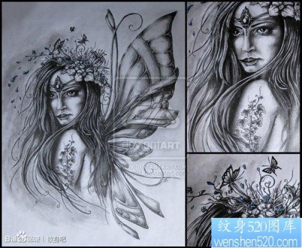 唯美流行的蝴蝶精灵纹身图片_天使纹身图案大全_纹身图吧
