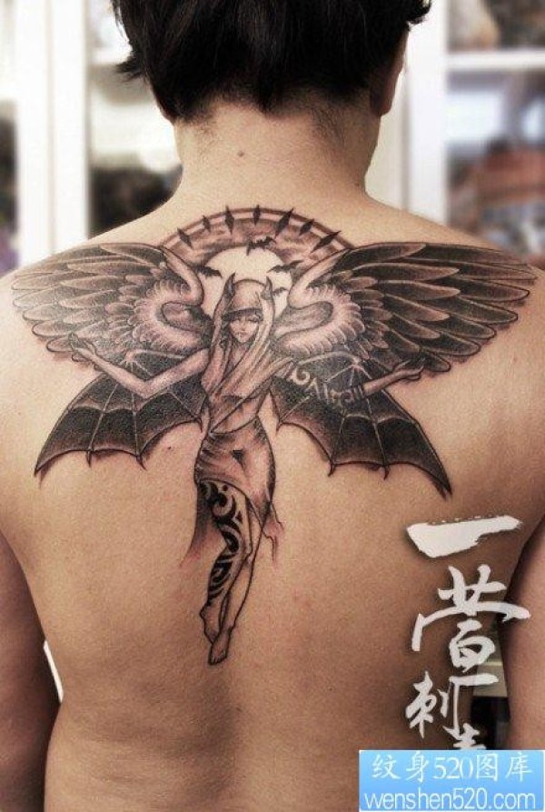 男性后背流行漂亮的天使纹身图片_天使纹身图案大全_纹身图吧