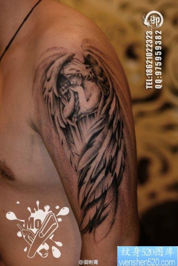 手臂纹身图案大全手臂天使丘比特纹身图案图_天使纹身图案大全_纹身图吧