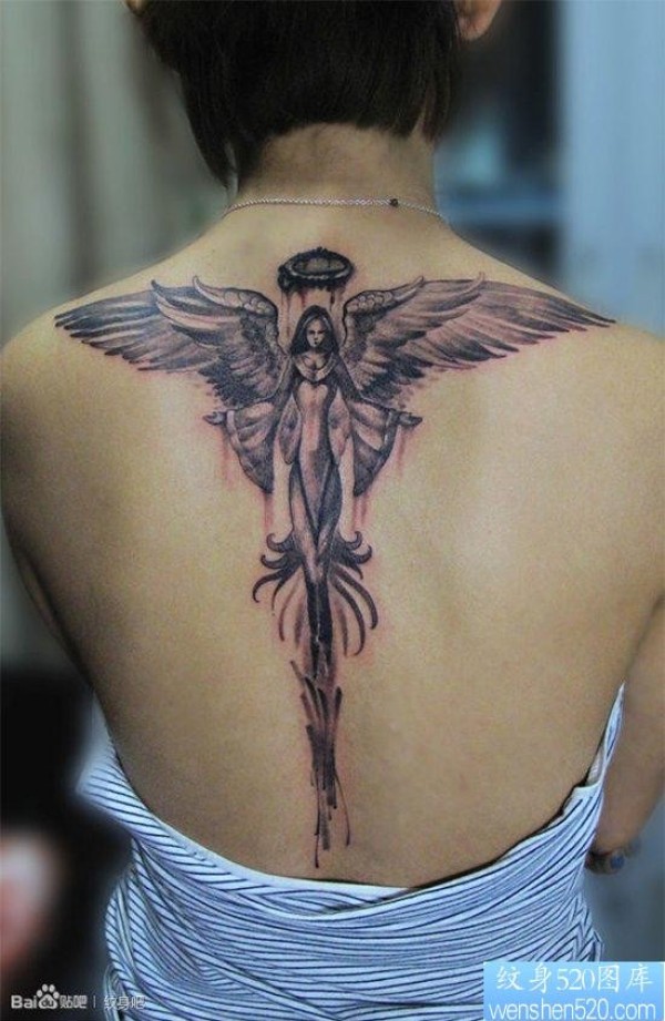 女人后背流行前卫的天使翅膀纹身图片_天使纹身图案大全_纹身图吧