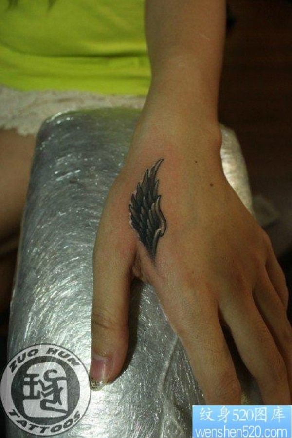 女人手部虎头小翅膀纹身图片_天使纹身图案大全_纹身图吧