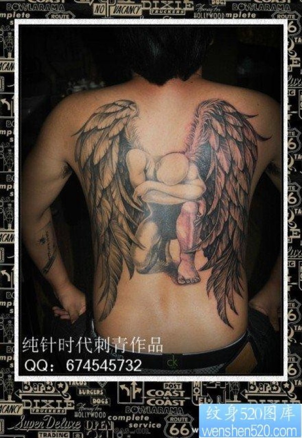 后背纹身图案大全超酷超帅的满背天使翅膀纹_天使纹身图案大全_纹身图吧