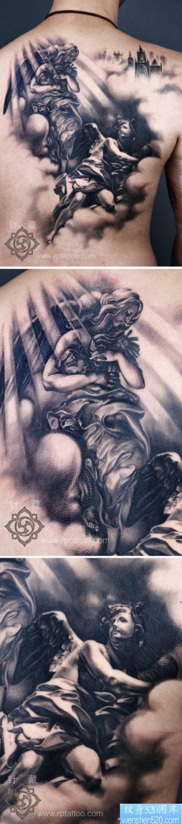 后背前卫经典的黑白天使纹身图片_天使纹身图案大全_纹身图吧