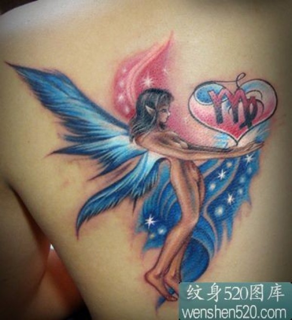 后背彩色爱心天使纹身作品_天使纹身图案大全_纹身图吧