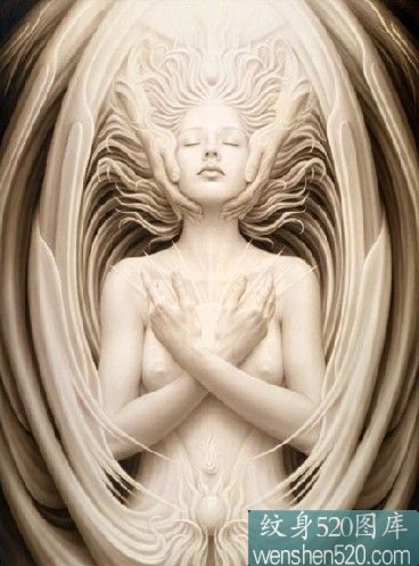 抽象女性天使纹身手稿_天使纹身图案大全_纹身图吧