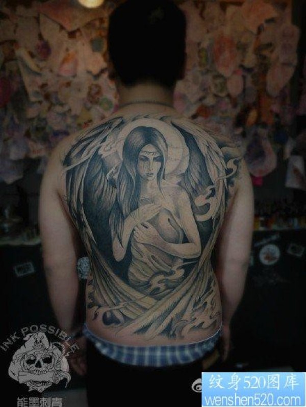 男性后背很酷经典的满背天使纹身图片_天使纹身图案大全_纹身图吧