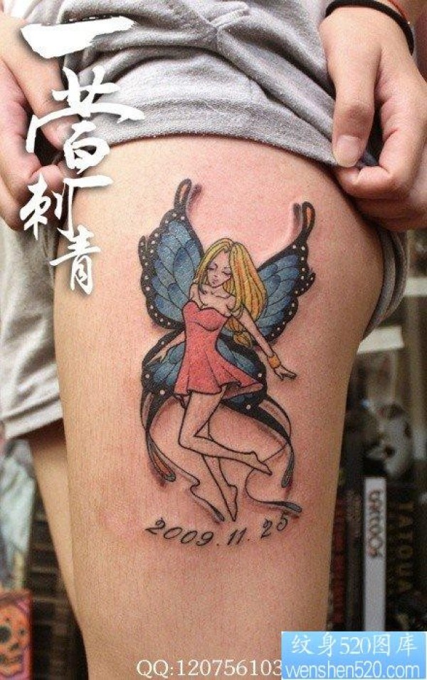 女人腿部流行前卫的精灵纹身图片_天使纹身图案大全_纹身图吧