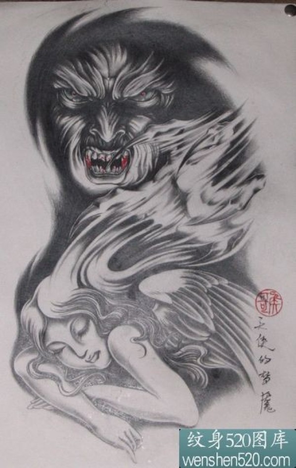天使和魔鬼纹身手稿_天使纹身图案大全_纹身图吧